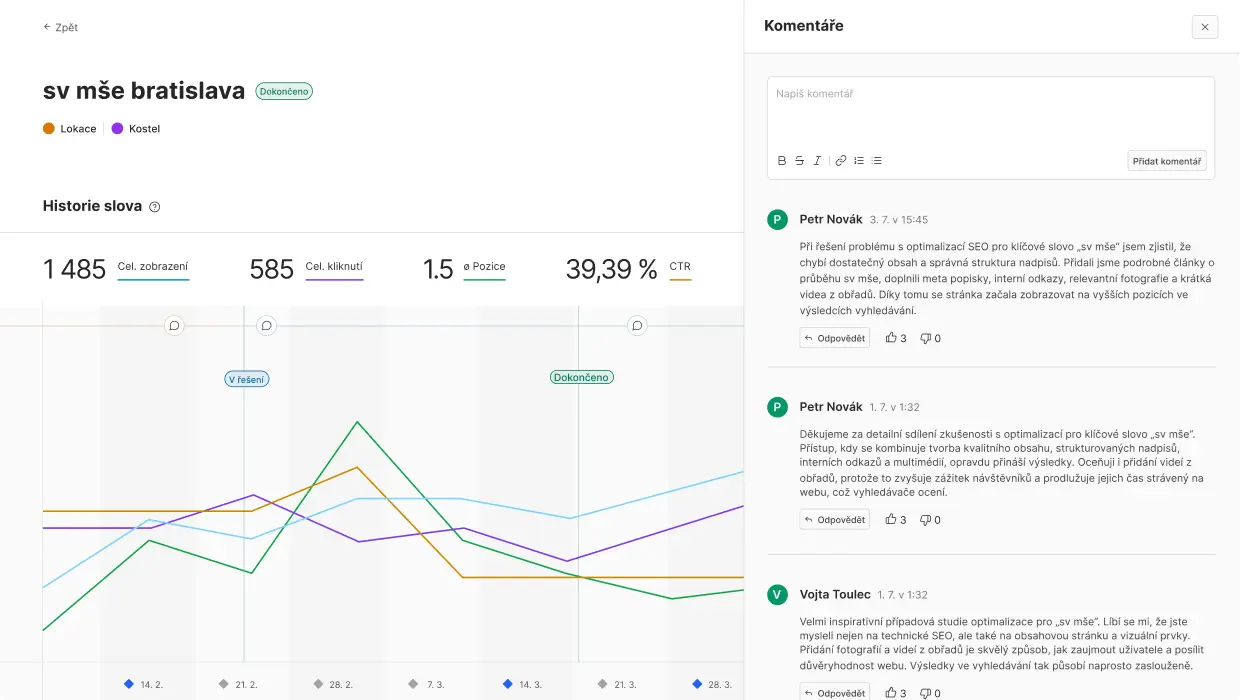 Keywordino najde klíčová slova, na která se váš web už zobrazuje na Googlu, ale v obsahu chybí. Stačí je doplnit tam, kde budou mít největší efekt, a vaše pozice a návštěvnost rychle porostou.